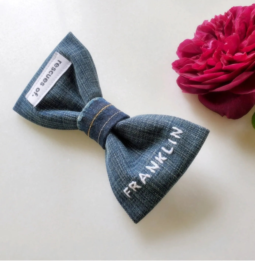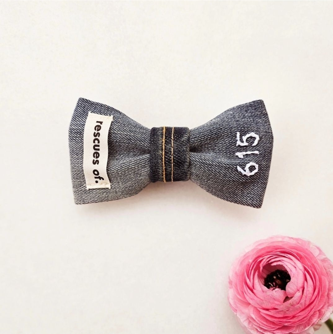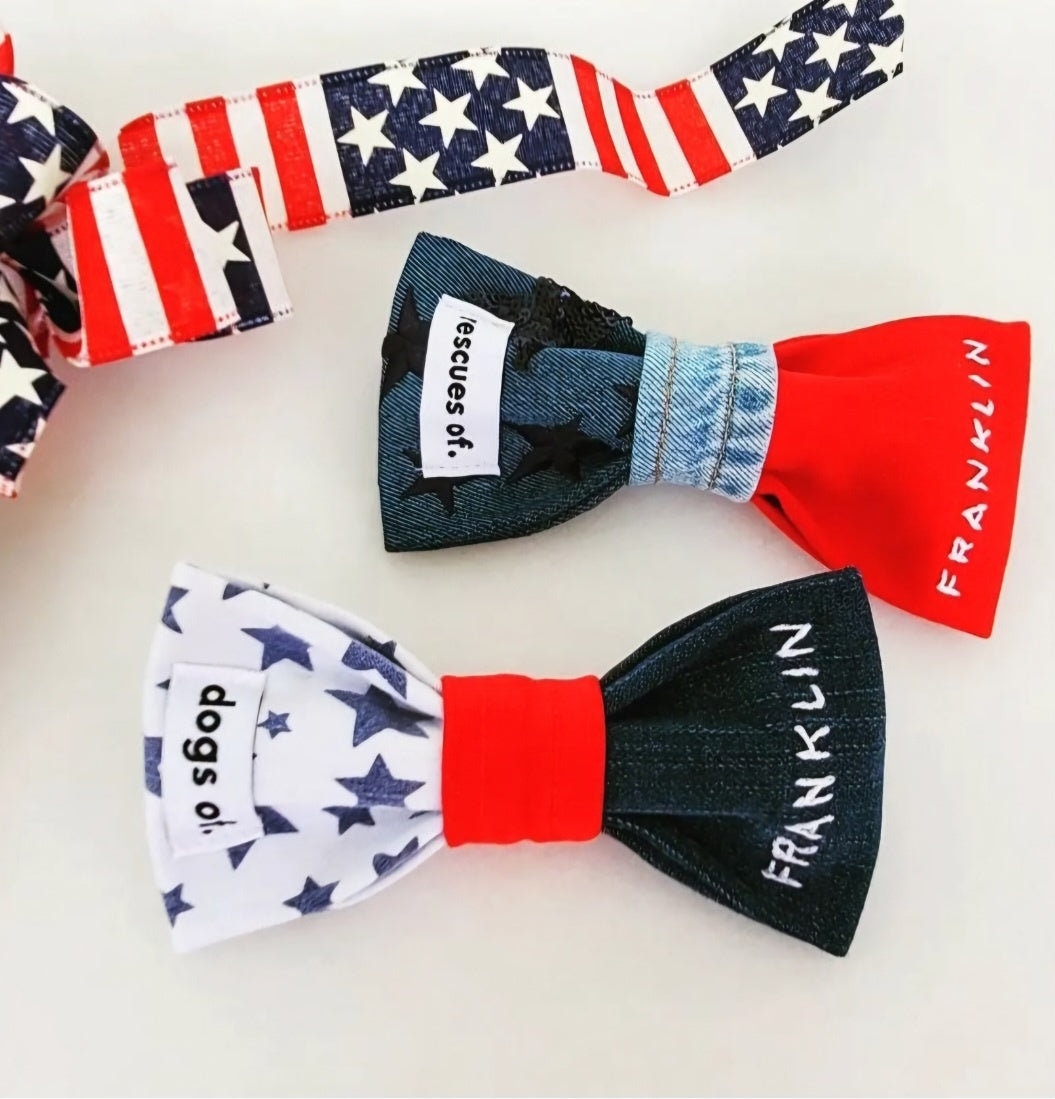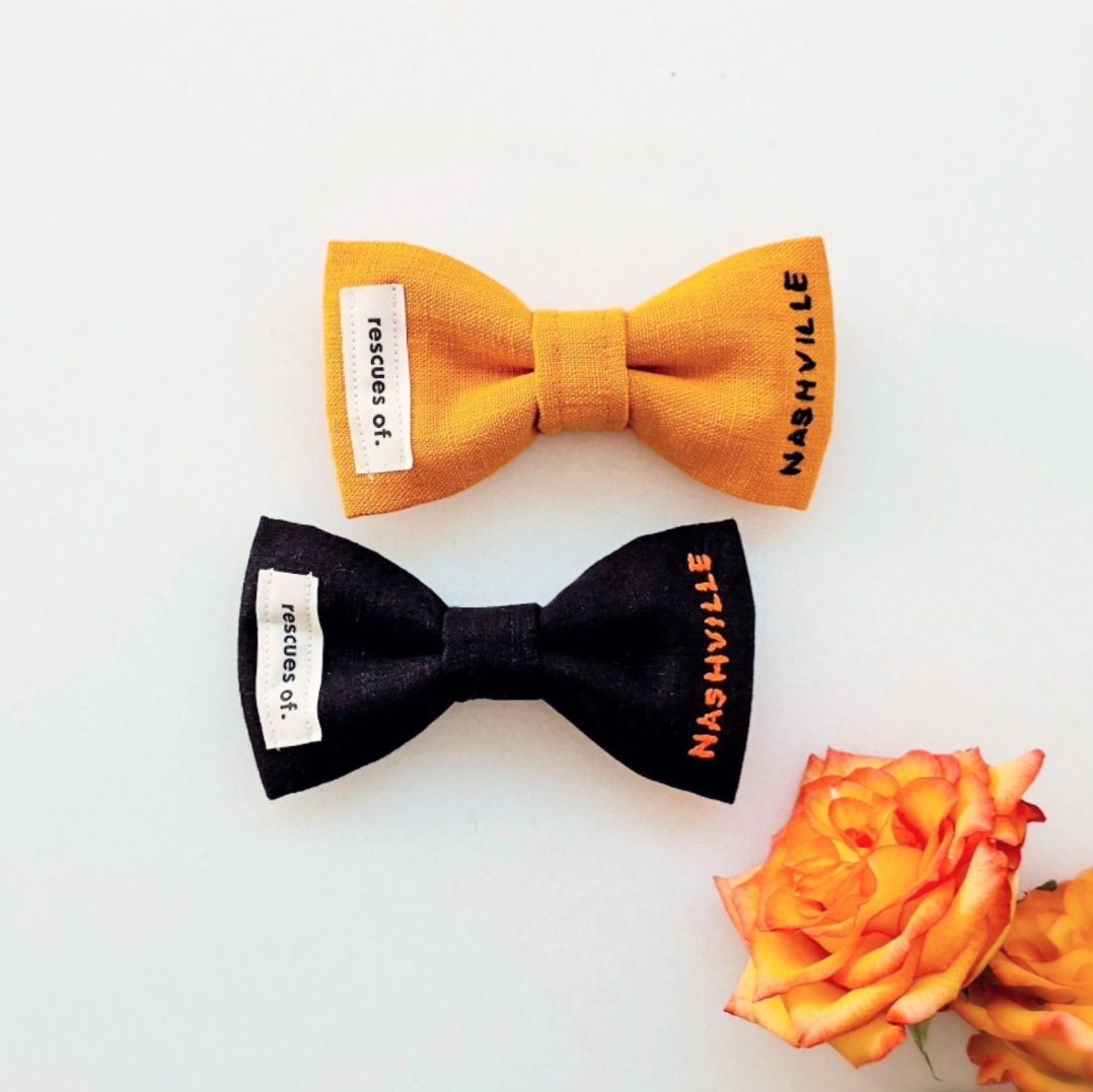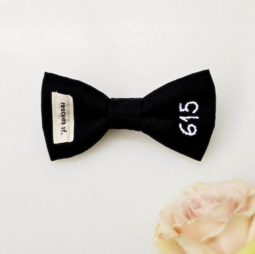 Bows and bow ties with Rescues Of your town, city, neighborhood, area code or zip. Twenty percent of the retail cost is donated to a non-profit animal welfare organization.