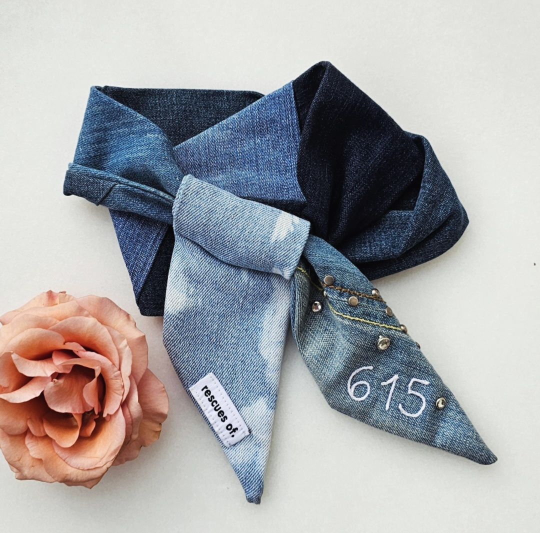 Bandanas, denim/hemp scarf ties and hemp leashes: Hand wash cold water with a no-rinse laundry soap or mild detergent. OK to machine wash cold on gentle cycle with like colors (in a mesh bag if possible). Lay flat, do not tumble dry.
