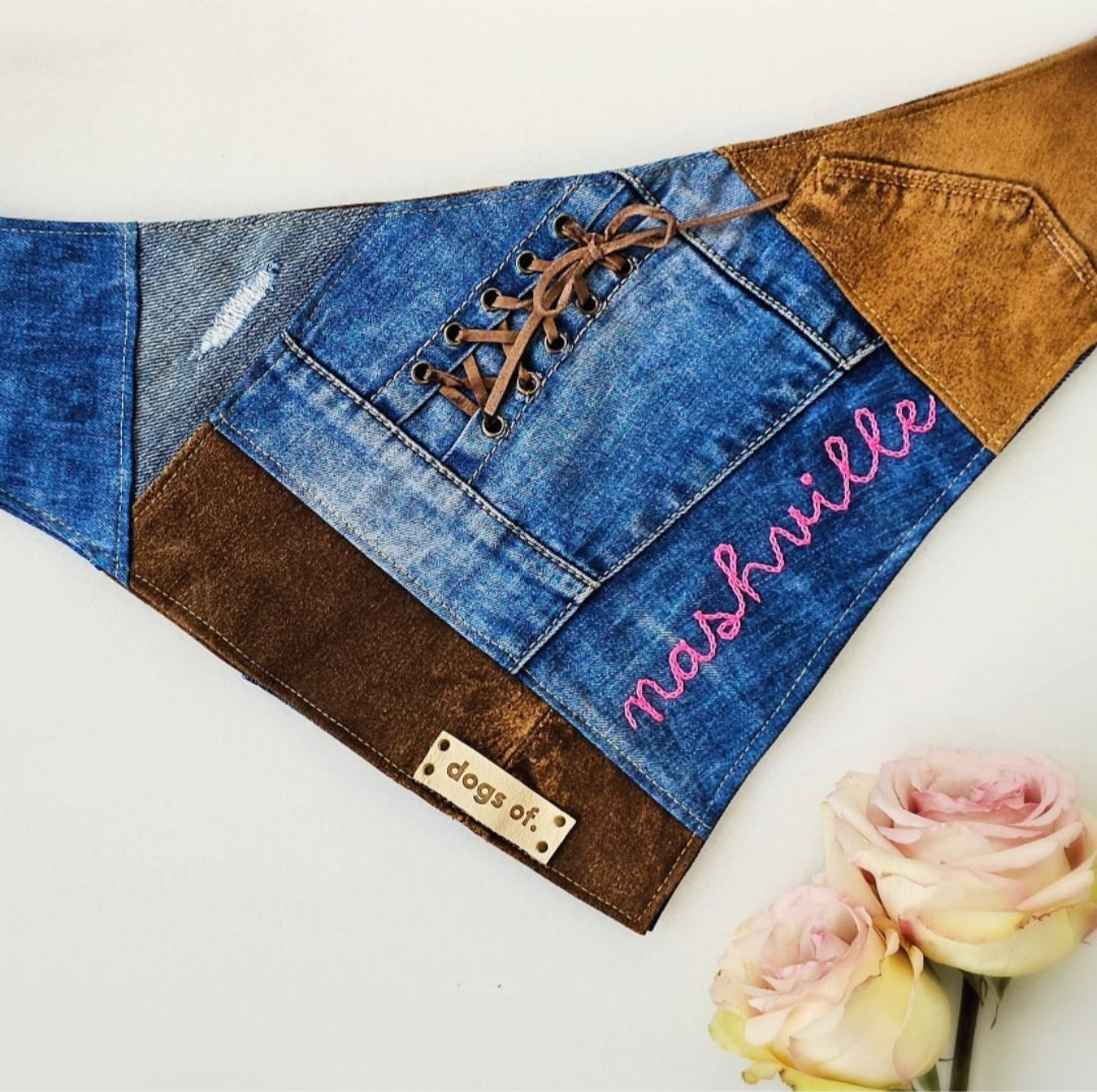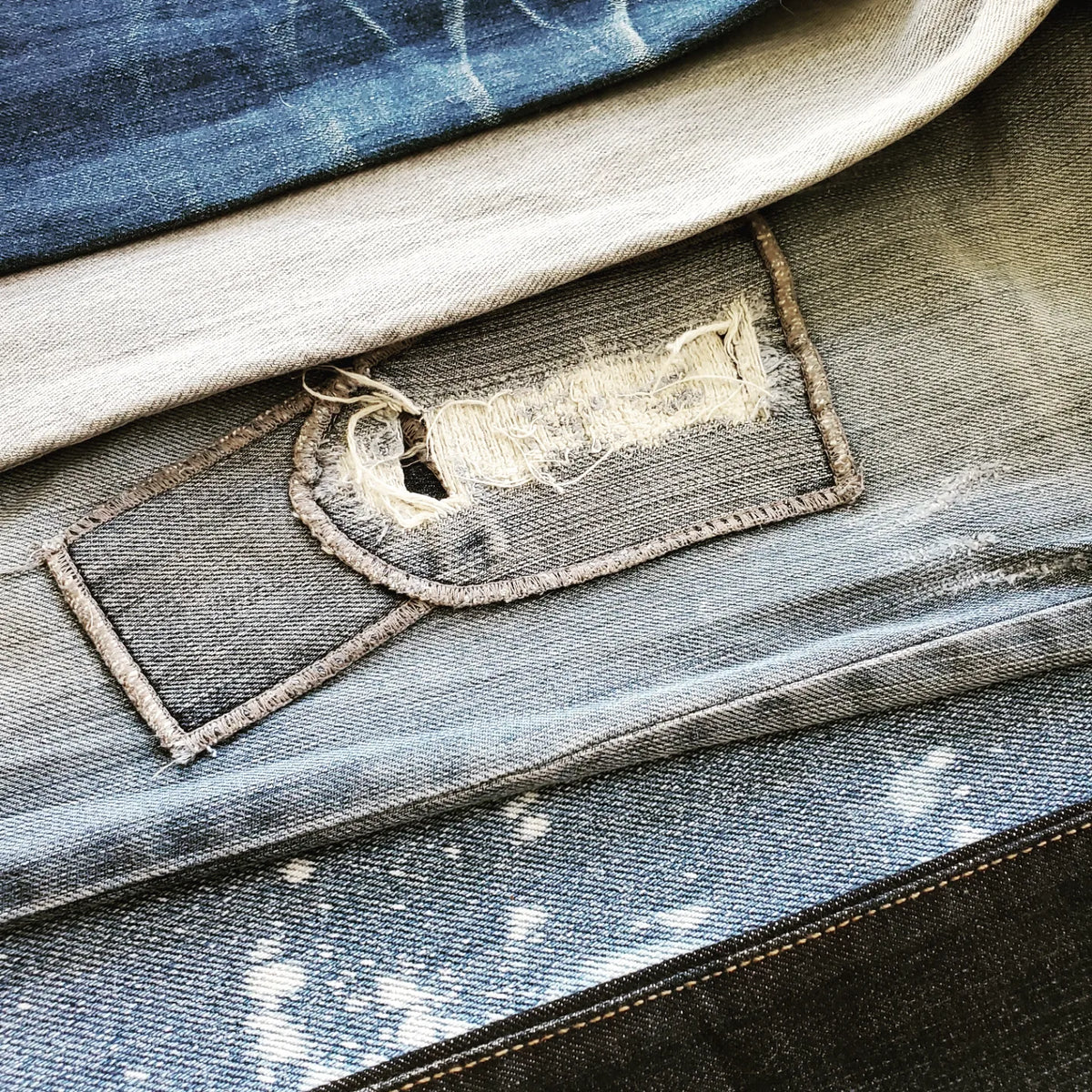 Used denim for Dogs Of Town products is carefully selected. All denim is previously worn and chosen for certain qualities. Denim brands sought out and discovered offer sustainability, selvedge denim, and jeans with character. Old denim with variation of color and texture is a fave. Denim made in USA (usually vintage), Italy and Japan is currently stocked for those attributes.